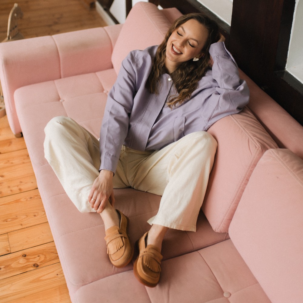 Pienza jsou elegantní nazouvací barefoot boty pro ženy, vyrobené v Polsku výhradně z přírodní kůže. Semišový svršek, kožená podšívka a stélky i ozdobná klopa s třásněmi vytvářejí klasický, ale velmi pohodlný model mokasín pro teplejší dny. Ideální na každý den, do práce, na schůzky i letní výlety. Přirozená alternativa ke klasickým, tvrdým a úzkým mokasínám.