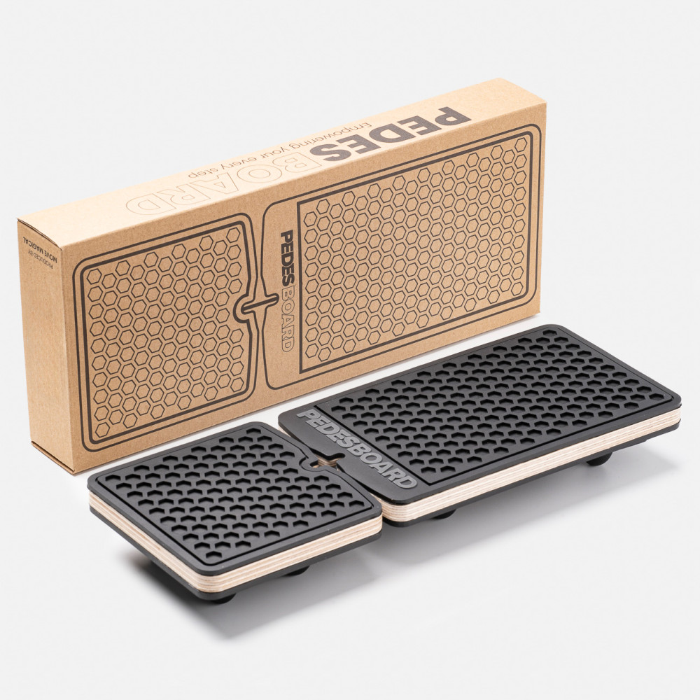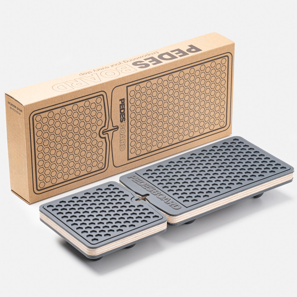 Revoluční nástroj pro trénink nohou, navržený k posílení svalů, zlepšení pohybových vzorců a rozvoji funkčnosti nejkomplexnější části lidského těla – chodidla. Pedes Board + je vyroben z protiskluzové a odolné gumy a z vysoce kvalitního dřeva. Celá konstrukce je spojena nezničitelným lanem odolným proti přetržení. Tento trenažér nohou má osm gumových nožek, které lze nastavit do různých poloh pro provádění různých cvičení. Pedes Board 2.0 + je vylepšená verze svého předchůdce. Varianta + má delší nožky, což umožňuje větší rozsah pohybu.