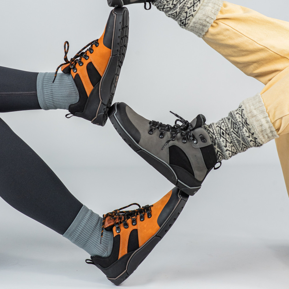 LOGAN vereint anatomisches Design und durchdachte Funktionalität. Durch den Nullsprengung (0,0 mm) und die breite, anatomische Zehenbox können sich die Zehen frei ausbreiten, was dem Körper hilft, eine natürliche, aufrechte Haltung einzunehmen. Stabilität entsteht hier aus der Anatomie – nicht durch „aufwendige“ Systeme, die die Bewegung einschränken. Die oberen, doppelten Schnürhaken ermöglichen eine präzise Anpassung des Schaftkragens, was die Sicherheit bei Querungen und steilen Abstiegen erhöht – ein Zug genügt, um den Unterschied zu spüren. Das Profil unterstützt eine gleichmäßige Schrittfrequenz selbst auf rutschigen Herbst- und Winterwegen, während der Sohlenrand das Obermaterial wirksam vor Schlamm und Kratzern schützt. LOGAN wurde entwickelt, um unterschiedlichen Wetterbedingungen standzuhalten und thermischen Komfort bis etwa –6 °C zu gewährleisten – je nach Aktivität und Art der Socken.