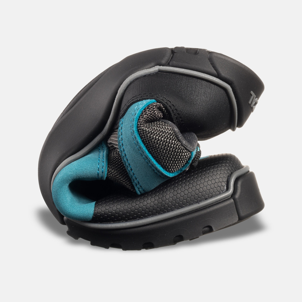 LOGAN vereint anatomisches Design und durchdachte Funktionalität. Durch den Nullsprengung (0,0 mm) und die breite, anatomische Zehenbox können sich die Zehen frei ausbreiten, was dem Körper hilft, eine natürliche, aufrechte Haltung einzunehmen. Stabilität entsteht hier aus der Anatomie – nicht durch „aufwendige“ Systeme, die die Bewegung einschränken. Die oberen, doppelten Schnürhaken ermöglichen eine präzise Anpassung des Schaftkragens, was die Sicherheit bei Querungen und steilen Abstiegen erhöht – ein Zug genügt, um den Unterschied zu spüren. Das Profil unterstützt eine gleichmäßige Schrittfrequenz selbst auf rutschigen Herbst- und Winterwegen, während der Sohlenrand das Obermaterial wirksam vor Schlamm und Kratzern schützt. LOGAN wurde entwickelt, um unterschiedlichen Wetterbedingungen standzuhalten und thermischen Komfort bis etwa –6 °C zu gewährleisten – je nach Aktivität und Art der Socken.