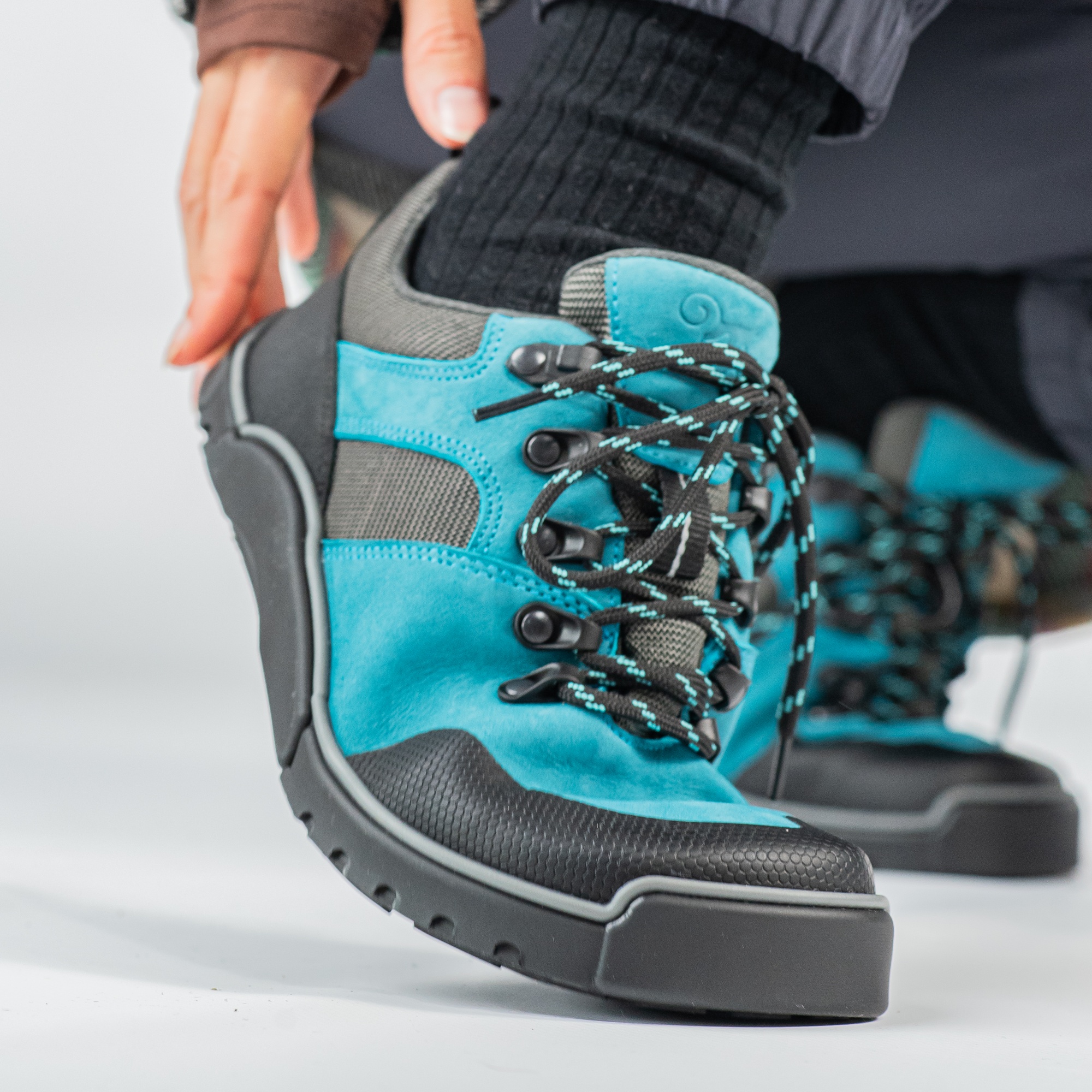 TUNDRA — niedrige Barfuß-Wanderschuhe für Damen und Herren. Die gleiche bewährte Kombination aus Nubukleder und Cordura® (UV+PU) wie beim Modell LOGAN, mit einer TE–POR-Membran, die vor Regen und Wind schützt. Nullsprengung, breite Zehenbox und superflexible Sohle geben dir volle Kontrolle über jeden Schritt. Ein Haken genügt, um Sicherheit auf dem Trail und Leichtigkeit in der Stadt zu spüren – bei jedem Wetter, zu jeder Jahreszeit.
