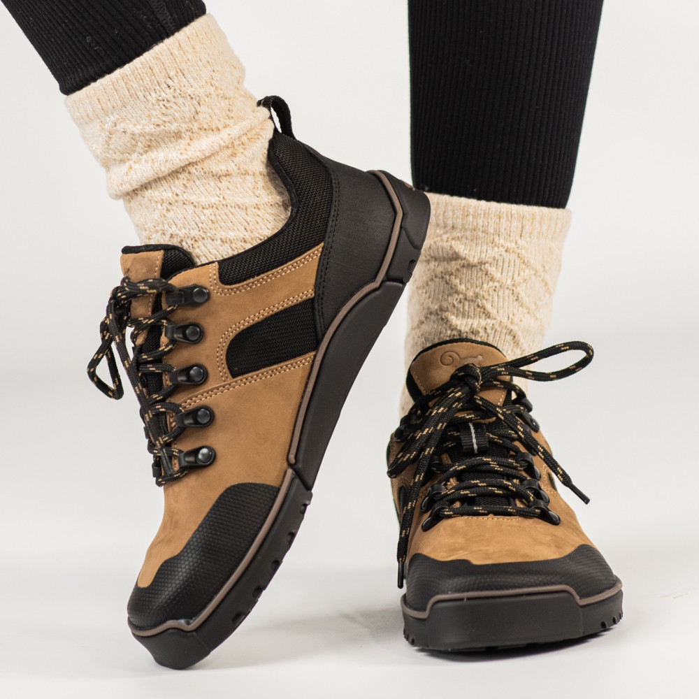 TUNDRA sind niedrige Barfuß-Wanderschuhe, die Flexibilität, natürliche Bewegung und soliden Schutz vereinen. Der Schaft aus geöltem Nubukleder und Cordura® (UV+PU) bewegt sich harmonisch mit dem Fuß, bleibt flexibel im Biegebereich und stabil, wo Halt erforderlich ist. Es ist die perfekte Kombination aus Softshell-Komfort und Hardshell-Stabilität – Weichheit in der Bewegung und Widerstandsfähigkeit gegen Steine, Wurzeln und Schlamm. Die TE–POR Water Resistant-Membran hält Regen und Feuchtigkeit draußen, während sie Schweiß nach außen ableitet – so bleibt das Innenklima auch an kühlen, feuchten Tagen angenehm. Die Sohle biegt sich mit der Leichtigkeit einer Sandale, bietet flüssige Bewegung und hervorragendes Bodengefühl – das ist echtes Barfußgefühl. Jeder Schritt wird bewusster, natürlicher und weniger ermüdend.
