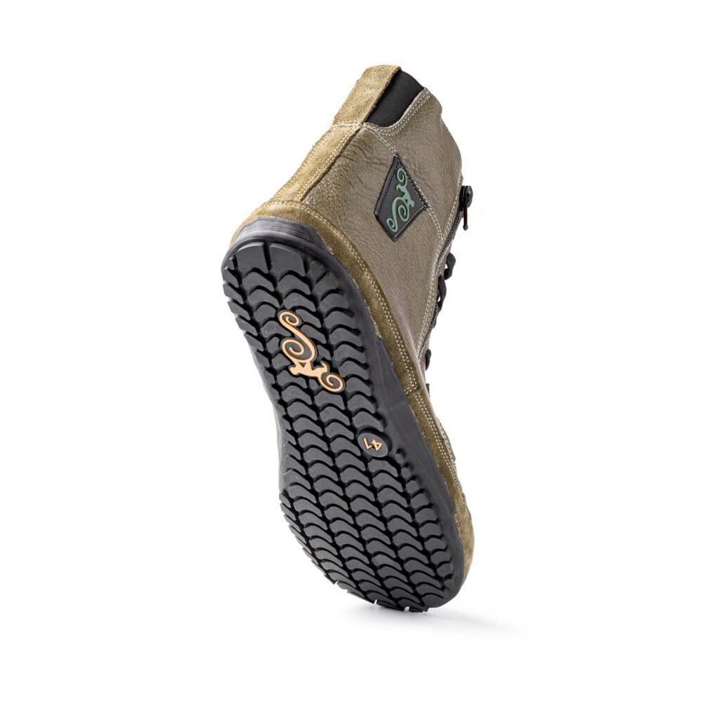 Winter-Barfußstiefel sind nicht nur eine warme und elegante Hülle. Auch die Sohle ist ein wichtiger Aspekt. Es ist dieselbe Sohle, die im Alaskan X-Modell verwendet wird, jetzt in zwei neuen Farbvarianten, aber mit denselben Eigenschaften. Sie ist unglaublich flexibel (die Stiefel lassen sich problemlos zu einer Spirale rollen), komplett flach und bietet auf jeder Oberfläche eine hervorragende Traktion. Wenn Sie wie wir ein Fan des Barfußgehens sind, garantieren wir, dass Sie unsere minimalistischen Winterstiefel Alaskan Buffalo lieben werden.