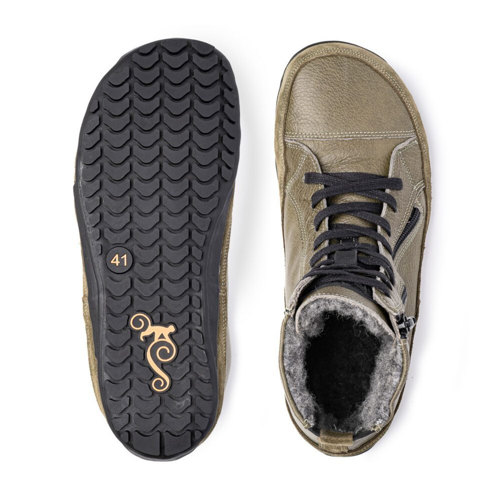 In allen Winterstiefeln sollten warme Socken getragen werden. Sie tragen dazu bei, die Fußhygiene zu erhalten und bieten zusätzlichen Schutz vor Minusgraden. In der Kategorie Socken finden Sie Woll-Barefoot-Socken, die wie unsere Schuhe Ihre Zehen nicht einengen.