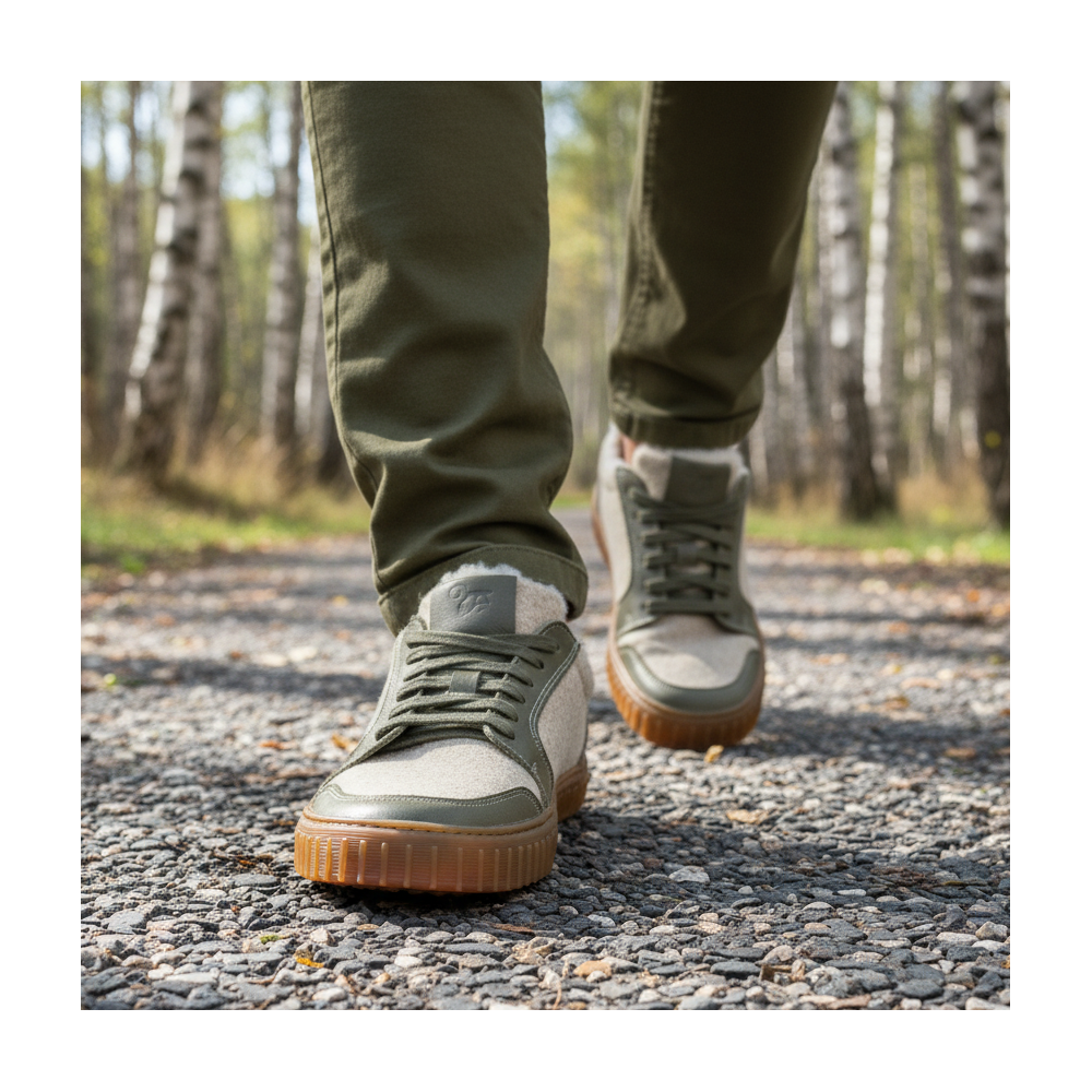 Startseite / Herren / Barfußschuhe / Winter / Herren-Woll-Barfuß-Sneaker für Winter - MERIX OLIVE