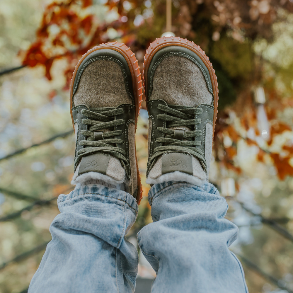 Men’s wool winter barefoot sneakers - MERIX OLIVE