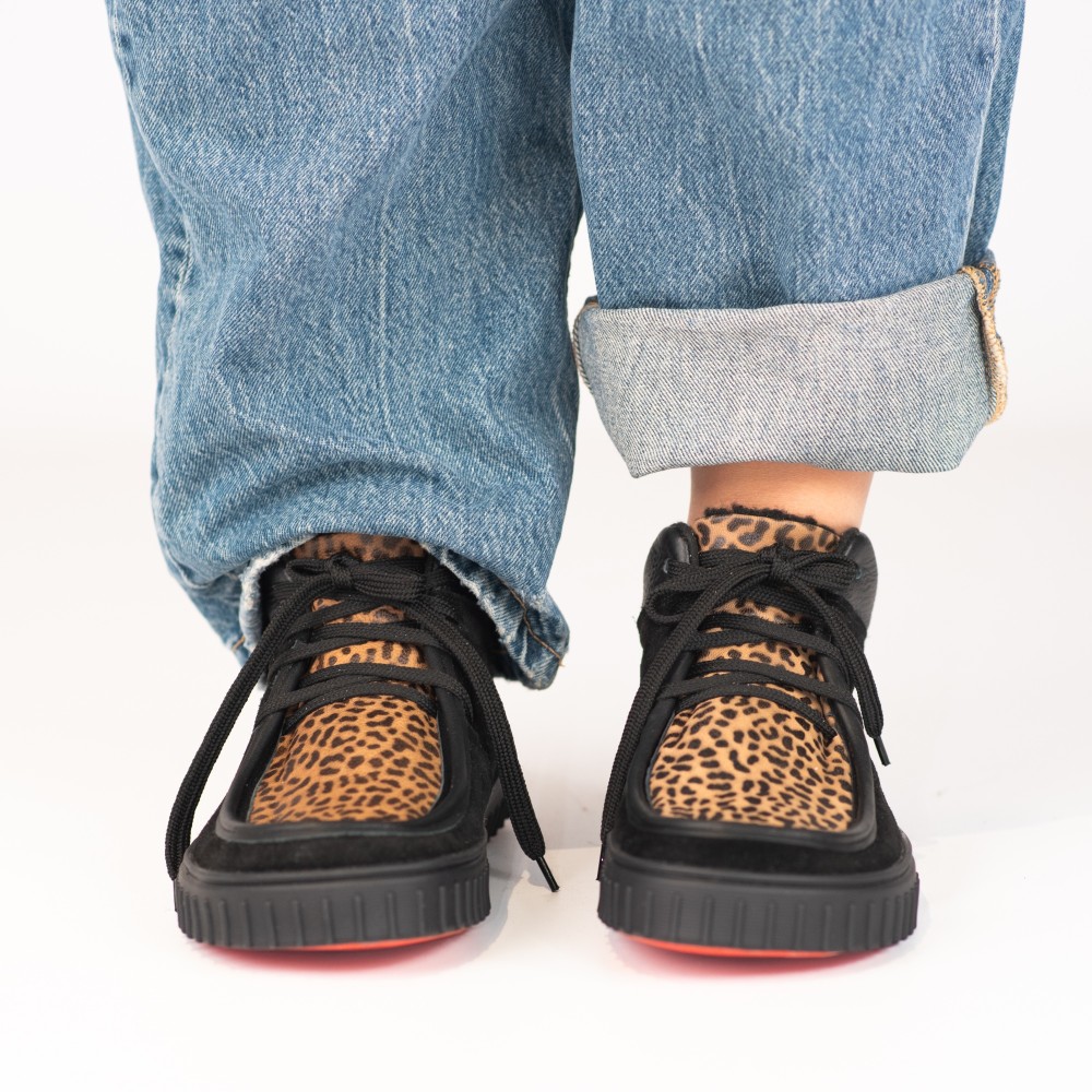 Gamuza, cuero liso o una mezcla con tejido noble. En el interior, un forro de lana que proporciona calor y comodidad en los días fríos, sin restricciones innecesarias. También se ve genial con calcetines gruesos de lana que sobresalen por encima del empeine.
