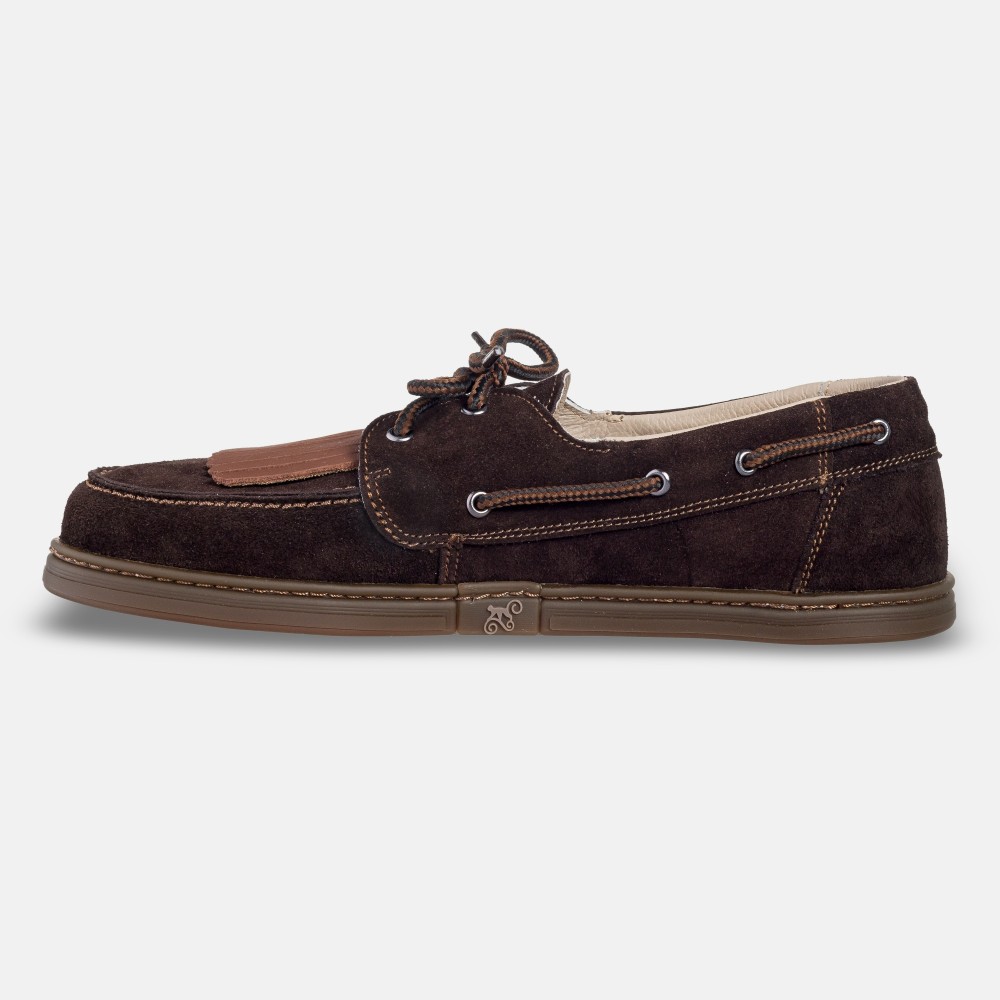 Galeon łączy swobodę klasycznych boat shoes z eleganckim, ale luźnym stylem, który świetnie sprawdza się w męskich zestawach smart casual. Boat shoes wniknęły już na stałe do codziennych stylizacji. Zamsz nadaje im szlachetności, a licowa patka dodaje charakteru. To męskie buty barefoot, które dobrze wyglądają z chinosami, lnianymi spodniami, jeansami, a szczególnie z krótkimi spodniami. Idealne na dzień w pracy, spotkanie po godzinach i wyjazd na wakacje w których możesz cieszyć się swobodą podczas zwiedzania.